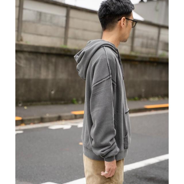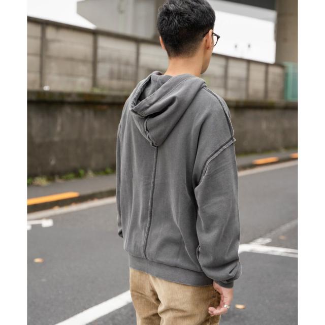 着込んだような色落ち感、フェード感を表現したピグメント加工のジップパーカー。
