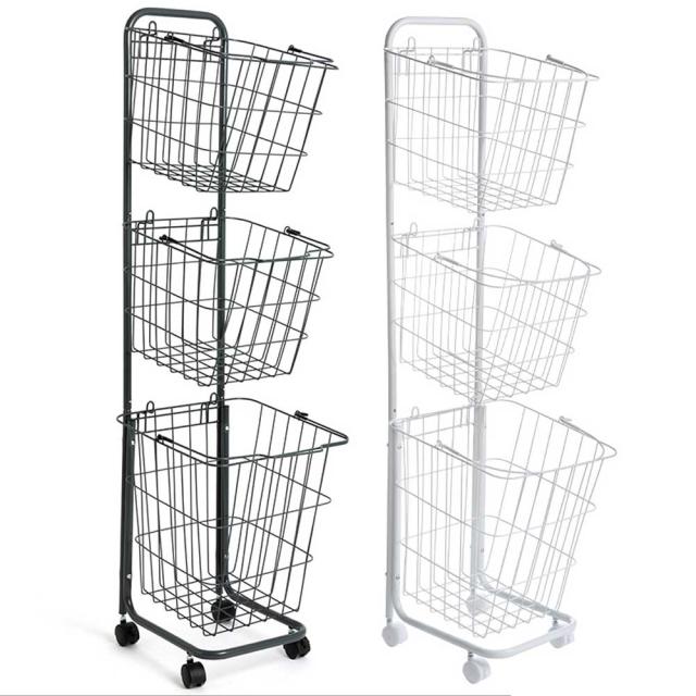 収納上手に!スペースを無駄なく使える縦置き3段タイプのランドリーバスケットラックです!