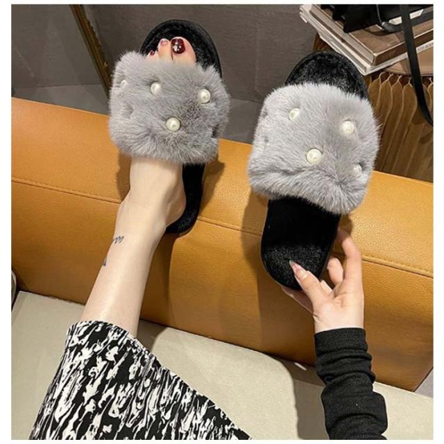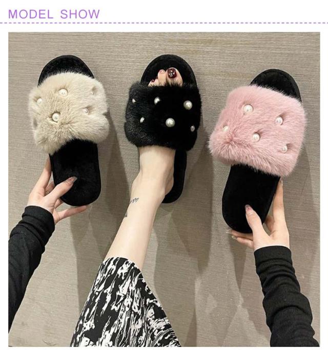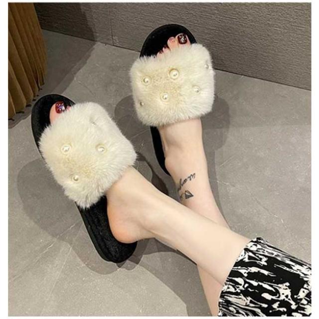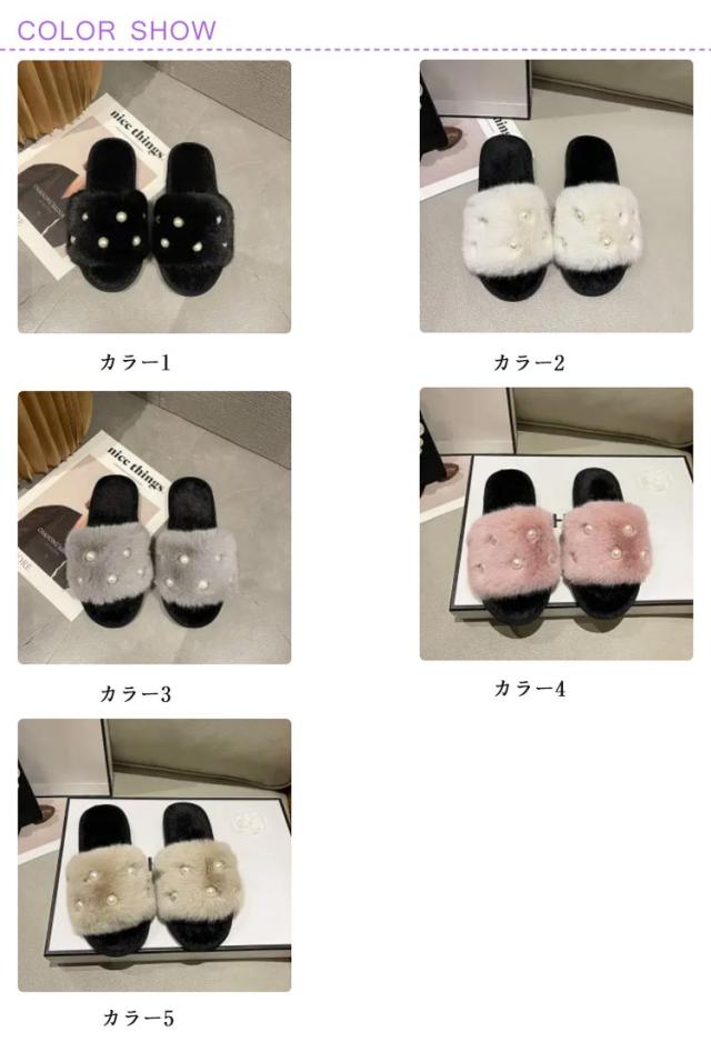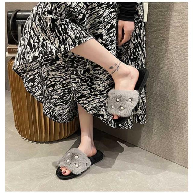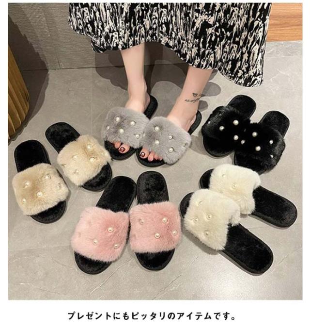 履きやすい レディース 冬 もこもこ フェイクファーサンダル ファーサンダル スリッパ フラット ミュール パール調 かわいい 冬 暖かい パール調 ぺたんこ 滑り止め