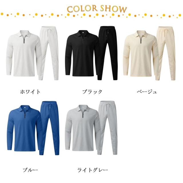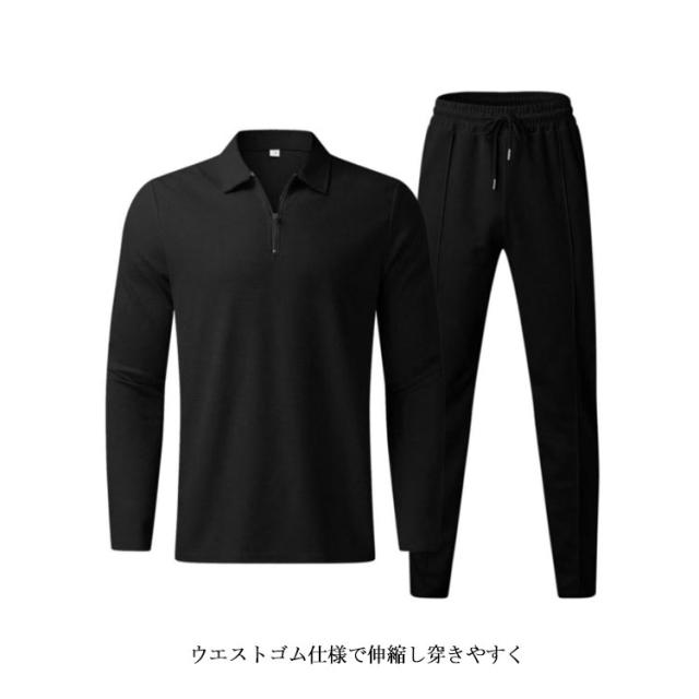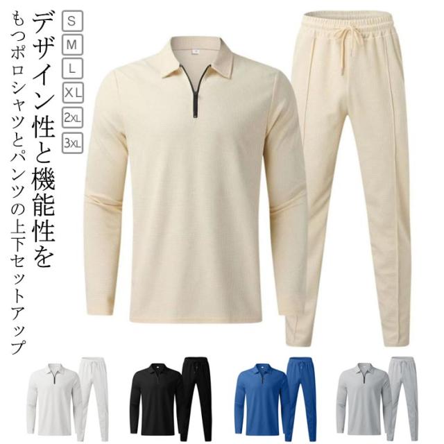 メンズ 上下セット 春 大きいサイズ トップス 長袖 冬 秋 セットアップ 襟付き 春秋 ポロシャツ スウェット トレーナー ゴルフウェア ジャージ ゴルフパンツ 運動着 プルオーバー 冬 秋冬 秋服 冬服 40代 50代