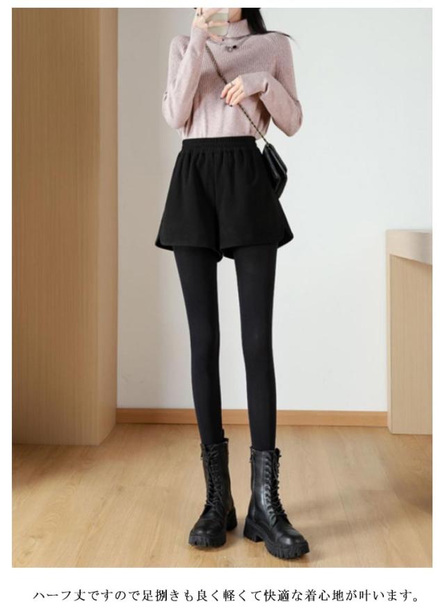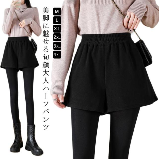 ハーフパンツ ショートパンツ ワイドパンツ 半ズボン 秋冬 フェイクウール レディース ウールタッチ 膝丈 無地 秋 五分丈 パンツ 厚手 カジュアル 大人可愛い ウエストゴム 秋 冬 大きいサイズ 春 シンプル 秋服 秋 冬服 冬 春 服 春服 送料無料