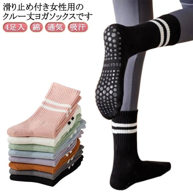 レディース シリコン クルーソックス 靴下 ヨガ ジム 4足入り 滑り止め靴下 フィットネス 滑り止め付き靴下 4足入り ホットヨガ 通気性 吸汗 抗菌 スポーツ靴下 ヨガソックス ソックス スポーツ 長い 綿 ラインソックス