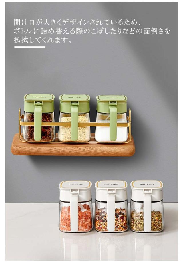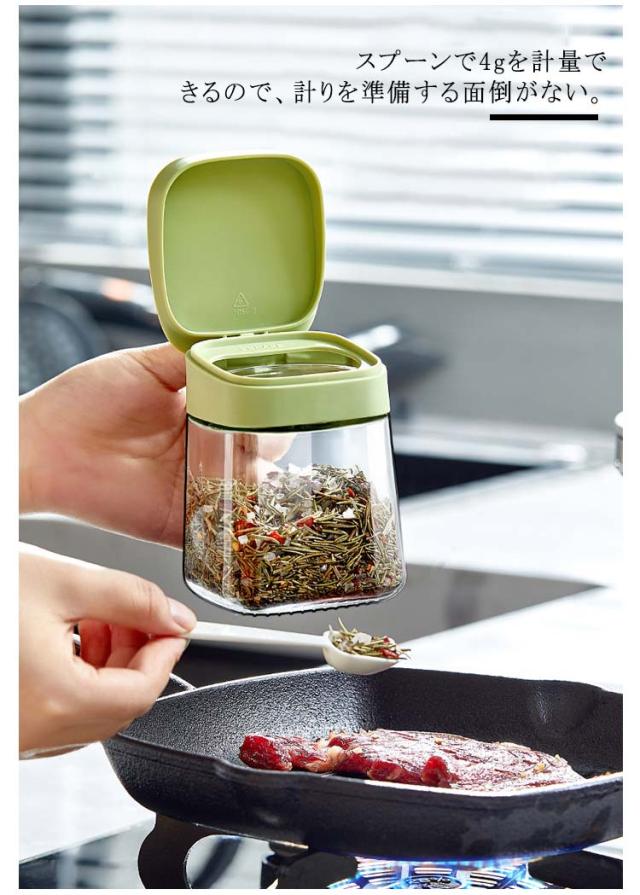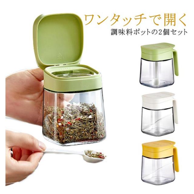 | ワンタッチで開く調味料ポットの2個セット 蓋がワンタッチで開けられます。 開け口が大きくデザインされているため、ボトルに詰め替える際のこぼしたりなどの面倒さを払拭してくれます。 ガラス製で匂いや色が移りにくいため、スパイスを入れるのにも適しています。どこから見ても中身が見えるため、ラベリングなしでもOK! ハンドルを握ると、片手で簡単にフタを開けられます。 スプーンで4gを計量できるので、計りを準備する面倒がない。 2個セットなので複数の調味料を使う方におすすめです。 | |