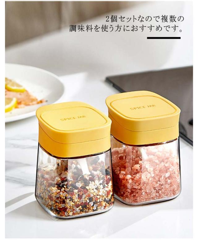 調味料入れ 【2個セット】 ガラス コショウ入れ 角型 300ml 塩入れ 調味料ポット 収納 調味料ポット 砂糖入れ ワンタッチで開く 調味料ケース 保存容器 キッチン スパイスボトル スパイス 北欧 おしゃれ