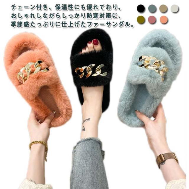 レディース ファーサンダル カラフル チェーン付き もこもこ チェーン付き フェイクファーサンダル スリッパ 痛くない 冬 大人 韓国ファッション 歩きやすい