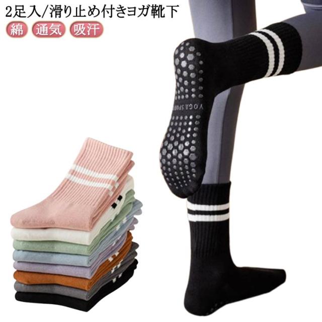 ヨガ 滑り止め ピラティス 送料無料 滑り止め靴下 2足セット レディース 通気 滑り止め付き ヨガ ソックス クルーソックス 靴下 シリコン フィットネス yogaソックス ジム ピラティス ホットヨガ ヨガソックス 綿 吸汗 抗菌