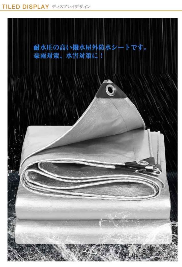 | 両面に防水コーティングが施されており、耐候性に優れ、強度は抜群! 耐水圧の高い撥水屋外防水シートです。豪雨対策、水害対策に! 軽くて丈夫なPE素材で作られており、耐傷性・耐久性・耐摩耗性が良く、長寿命です。 畳みやすいので、収納にも大変便利です。 日光、雨、ホコリ、紫外線、雪、霜など、様々な過酷な環境下でも荷物をしっかりガードしてくれます。 便利なハトメ穴は、頑丈な亜鉛メッキです。使い勝手の良いロープインでさらに便利! 農業、林業、牧畜、漁業、陸海交通、運輸業、日よけ、埃除け、風よけ、脱穀シート、乾燥シート、果実熟成シート、堆肥シート他、温床用シート、DIY作業、アウトドア、キャンプ、運動会、ピクニック、花見、レジャー等、プロから一般のご家庭まで幅広くご利用いただけます。 | |
