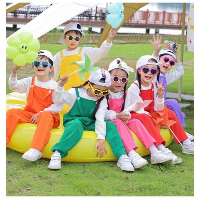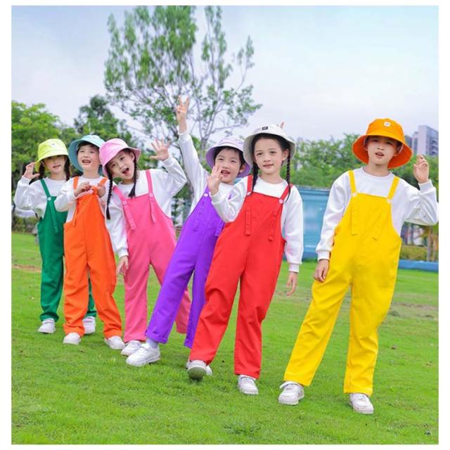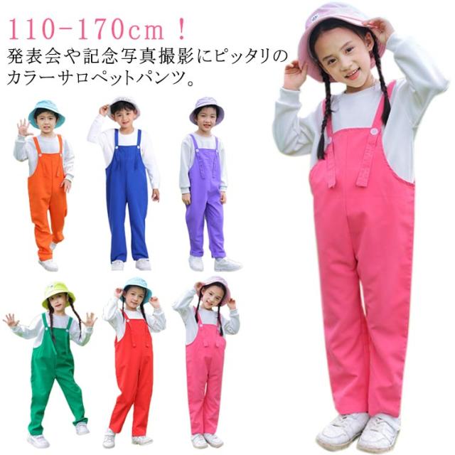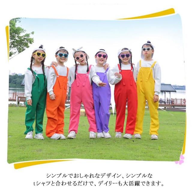 ダンス衣装 オーバーオール サロペットパンツ キッズ 女の子 子供 幼稚園 写真撮影 カラフル カラーパンツ 演出服 サロペット 保育園 発表会 卒園式 文化祭 学園祭 男の子 学校活動 応援団 ダンスウエア 卒業式 記念写真 ベビー 韓国子供服 無地 110-170cm