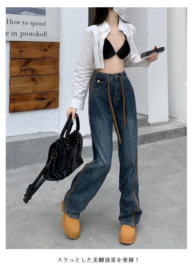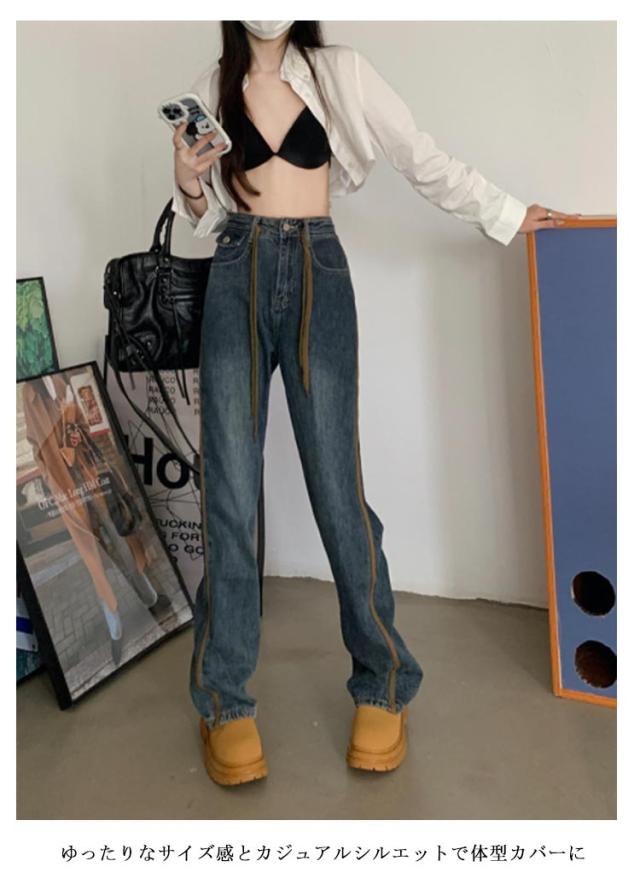 春 ワイドパンツ ゆったり ボトムス ジーパン ジーンズ 夏 ワイドパンツ ストレート ロング丈 ハイウエスト デニムズボン デニムパンツ 秋 着痩せ 美脚 大きいサイズ ストレート ジーパン 柔らかい 体型カバー