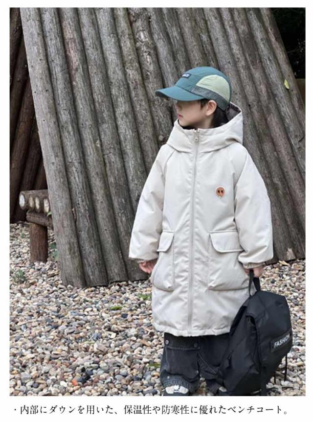 ベンチコート ロングコート ビッグポケット ジャケット キッズ ジュニア ベンチコート リバーシブル ダウンコート 防風 撥水 ハイネック フード付き 配色 暖かい 男の子 女の子 子供服 防寒