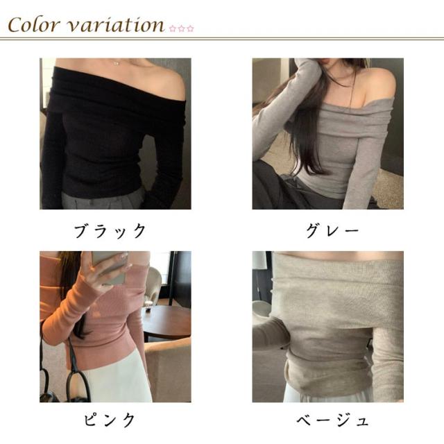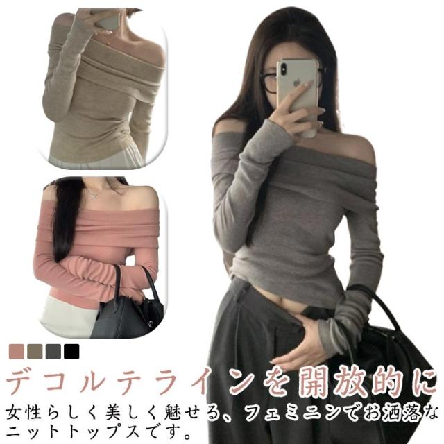 オフショルダー トレンド オフィス おしゃれ カジュアル 長袖 リブニット ニットトップス オフショルダー レディース ニットセーター オフショル リブニットトップス 肩だし 鎖骨 春秋冬