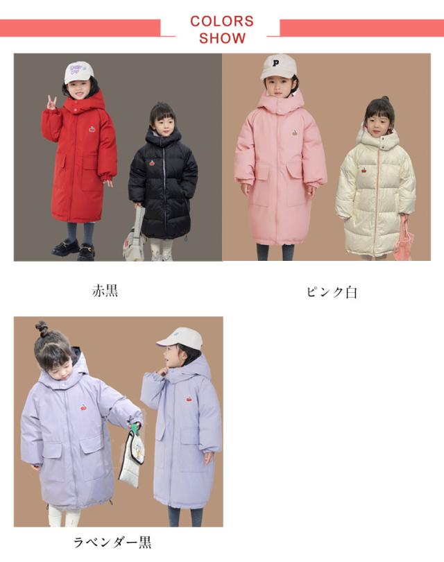 防水 リバーシブル アウター 両面使える ダウンコート ジャケット ジュニア 防風 女の子 ベンチコート ロングコート ベンチコート チェリー ビッグポケット ジップアップ フード付き 速乾 配色 ロゴ 男の子 子供服 小学生 厚手 暖かい ハイネック 防寒 冬服