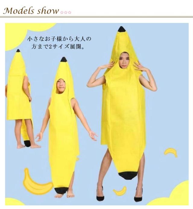 服 キッズ コスプレ バナナ かぶりもの 子供用 大人用 ハロウィン仮装 変装 誕生日 パーティー 親子 ペア 衣装 被り物 面白い おもしろ カップル 可愛い バナナ コスチューム イベント クリスマス 学園祭 文化祭