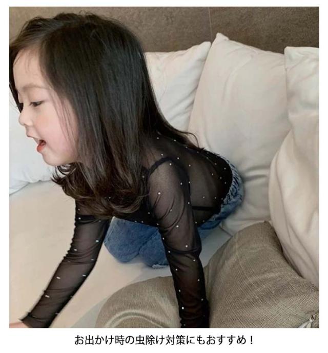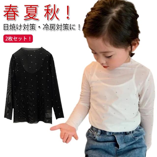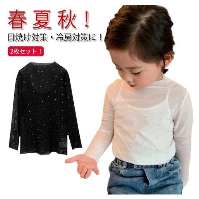 長袖 冷房対策 Tシャツ レース 長袖Tシャツ 透け 女の子 【2枚セット】韓国子供服 日焼け対策 トップス ラッシュガード 薄手 シアートップス スパンコール きらきら 【2枚セット】韓国子供服 ベビー 男の子 女の子 可愛い サマー カットソー