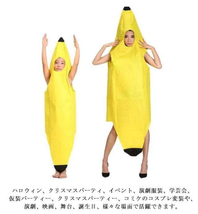 バナナ 変装 子供用 パーティー バナナ 着ぐるみ 衣装 親子 コスチューム 被り物 大人用 誕生日 ペア かぶりもの 面白い 服 おもしろ カップル 可愛い キッズ ハロウィン仮装 イベント クリスマス 学園祭 文化祭
