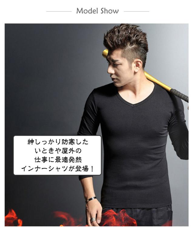 | Vネックと丸首、選べる2タイプ!紳しっかり防寒したいときや屋外の仕事に最適発熱インナーシャツが登場! 軽くて動きやすいです。通気性もよくデザインも最高です! 伸縮性に優れた動きやすいストレッチ素材で、登山、スポーツなど様々な場面で活躍。 生地感は柔らかくて触り心地が良く、通気性と速乾性にも優れ、長時間の着用でも窮屈感がなく、着心地が抜群です。 厚地&裏起毛で、保温性が驚くほど高くしっかりあたたかい。 秋、冬、春の通勤、通学などのカジュアルシーンやルームウェアとしても幅広くご利用いただけます。 | |