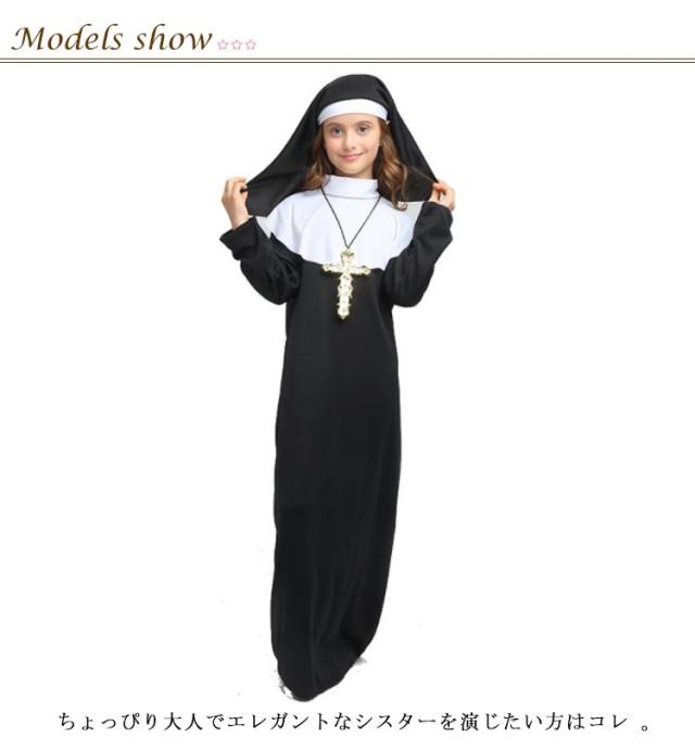 | ロング丈のキッズ 修道女のコスチューム。ワンピース、頭巾のセットです。 ドレスは上からかぶって着れるスモックタイプで着替えがカンタン、余興や舞台衣装やシス ターの衣装としてお使いいただけます。 ちょっぴり大人でエレガントなシスターを演じたい方はコレ 。 上質の素材で作ったので、肌触りがいいコスチュームです。 クオリティーが高く、真の修道女と間違えられてしまうほどです。 ハロウィン、クリスマスパーティ、イベント、演劇服装、学芸会、仮装パーティー、クリスマスパーティー、コミケのコスプレ変装や、演劇、映画、舞台、誕生日、様々な場面で活躍できます。 | |