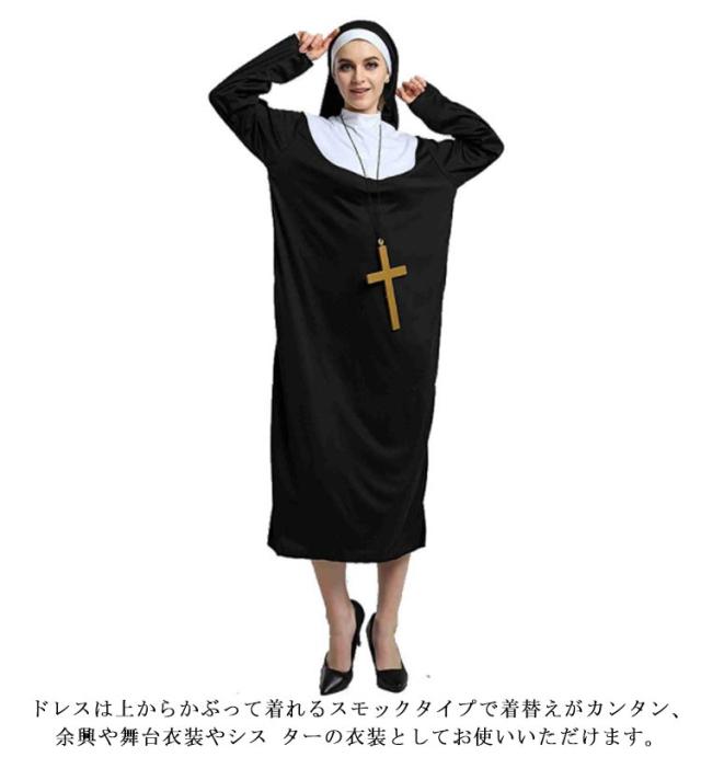 | ハロウィン人気のシスター/修道女のコスチュームです。 シスターのコスチューム服は最近大人気なコスプレ服です。コスプレに興味があるなら、このコスチュームはぴったりです! ドレスは上からかぶって着れるスモックタイプで着替えがカンタン、余興や舞台衣装やシス ターの衣装としてお使いいただけます。 ちょっぴり大人でエレガントなシスターを演じたい方はコレ 。 上質の素材で作ったので、肌触りがいいコスチュームです。 クオリティーが高く、真の修道女と間違えられてしまうほどです。 テーマパークやハロウィン、コスプレ、仮装パーティにはもちろん、結婚式の余興やイベントなどにも使えます! | |