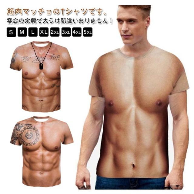 筋肉Tシャツ 半袖 筋肉Tシャツ Tシャツ 筋肉服 コスプレ 仮装 コスプレ 偽筋肉 マッチョ イケメン筋肉 偽腹筋 グラマー男性 メンズ 3Dデジタル 仮装 おもしろ ハロウィン 新年会 お祭り 忘年会 プリント 宴会 夏物 送料無料