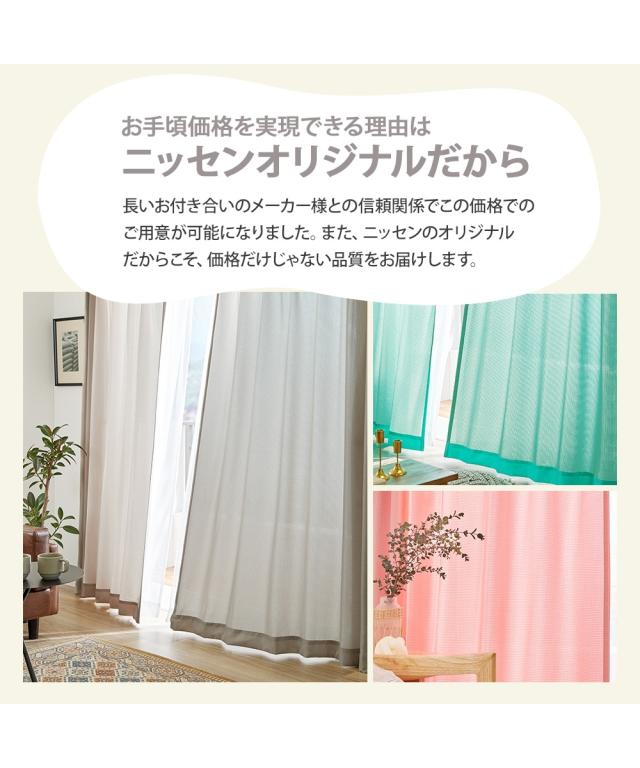 豊富な12色から選べる 。お買い得なカーテンです。 カーテンの表面に凹凸感のあるワッフル生地を使用しているので、おしゃれで表情のある空間にしてくれます。 淡いくすみカラーからビビットなカラーまで取り揃えていますので、カーテン次第でお好きなお部屋作りをお楽しみいただけます。 生地感にこだわりつつも、やはり、お買い得価格に一番こだわりました。リビングはもちろん、寝室や子供部屋にもおすすめです。 新生活をする方や模様替えで気分を変えたい方、やわらかな光を取り入れたい方、ぜひ、こちらのカーテンをお試しください 。 ■機能 なし ■おすすめポイント・特徴 洗濯機OK(ネット使用) ■こんなお部屋におすすめ 太陽の光を採り入れたいお部屋 ■こんな方におすすめ 朝すっきり目覚めたい方 ■ブランド ニッセンオリジナル