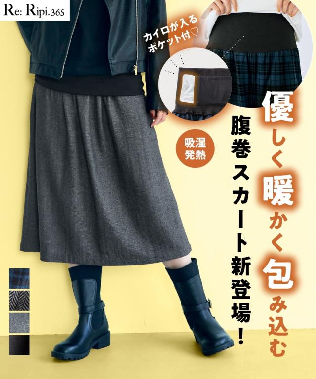 お腹を優しく包み込む腹巻要らずのスカートが新登場 。 。■デザイン長めのウエストリブがポイント。リブの内側にはカイロが入るポケット付き 。スタイリングや身長に合わせてリブを伸ばしたり曲げたり、丈調節ができます。■素材伸縮性のある柔らかなリブ素材が締め付けずに優しくフィットし、暖かさと着心地の良さを叶えてくれます。 ■コーディネイトトップスを選ばず着こなせるシンプルデザインで、丈感も調整できるのも魅力☆