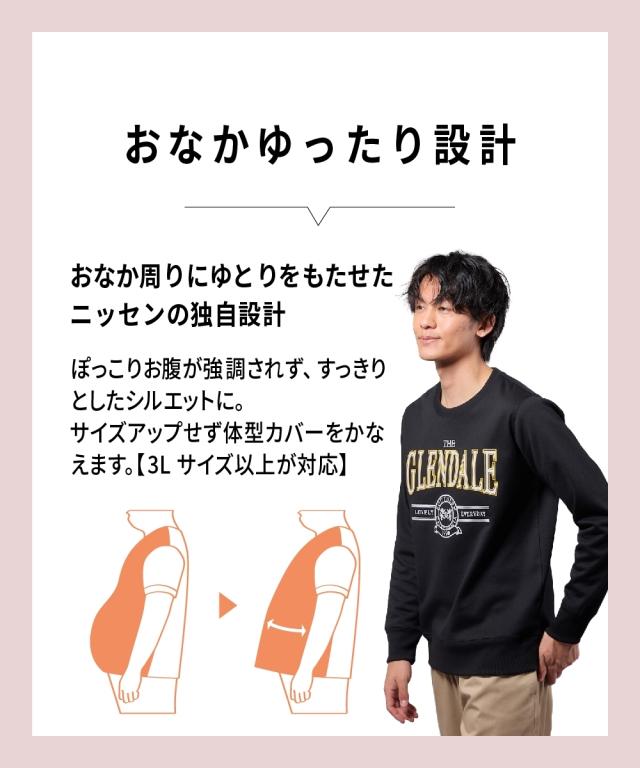 トレーナー スウェット メンズ 裏起毛 プリント 3L以上お腹ゆったり アメカジ柄 冬 プルオーバー M/L/LL ニッセン nissen agesugi_sfa