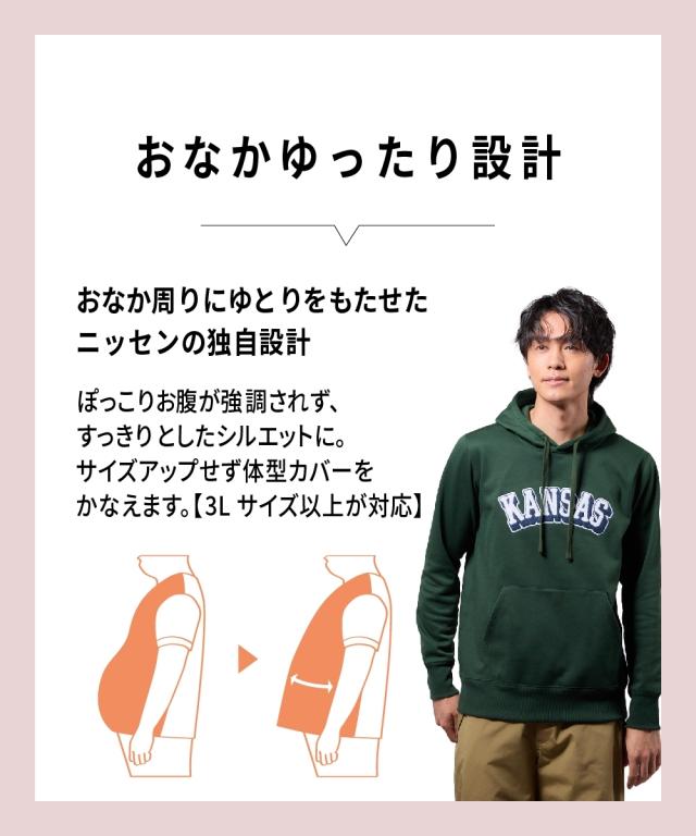 パーカー メンズ 裏起毛サガラ刺しゅう デザイン プル 3L以上お腹ゆったり ロゴ 冬 ビッグ ラージ フーディ 3L〜10L ニッセン nissen