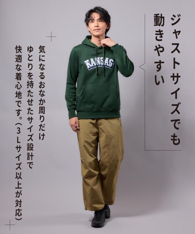 裏起毛サガラ刺しゅうデザインプルパーカー【3L以上お腹ゆったり】(ロゴ)