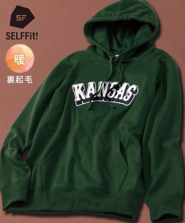 裏起毛サガラ刺しゅうデザインプルパーカー【3L以上お腹ゆったり】(ロゴ)