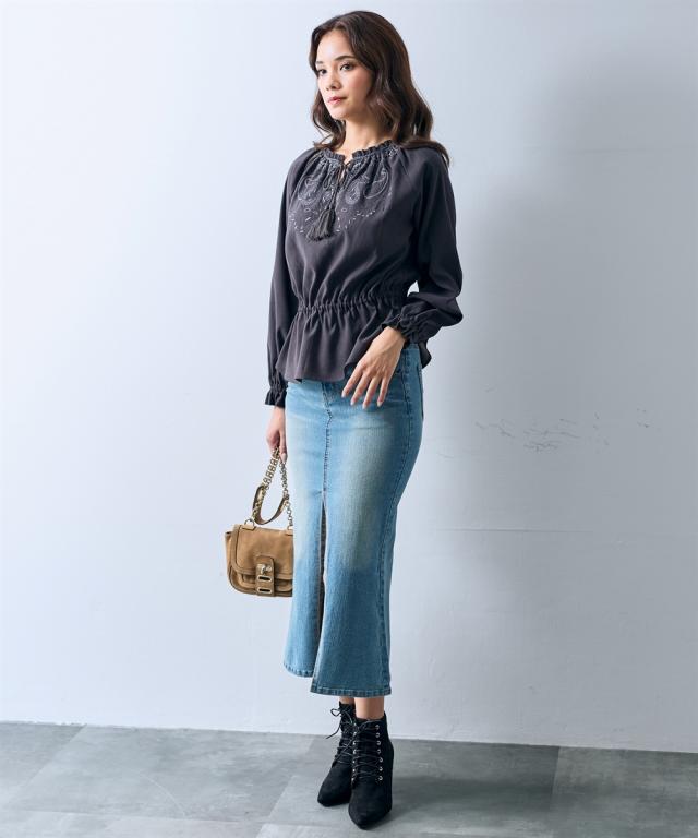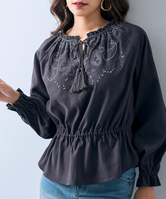 エスニック刺しゅうペプラムブラウス【ERES BELLA】