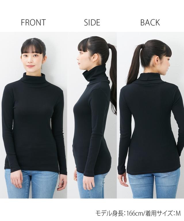 お肌に優しい綿100%フライスインナー 素肌に直接触れるインナーだからこそ、通気性良く肌ざわりのやさしい綿100%をおすすめします。 <天然素材100%> 天然素材コットン100%のインナーは、通気性や吸水性に優れており、さらりと快適な着心地が特徴です。 汗ばむ季節は、吸湿性により汗をすばやく吸収してさらりとした着心地を保ち、冬は保温性により暖かいため、一年を通して、快適に着用できます。 ふんわりとした優しい肌触りで下着の刺激やムレが気になる方にもおすすめです。 <着心地のよい素材> フライス素材ならソフトに横伸びして快適な着心地。 心地よい柔らかさでソフトな風合いが魅力です。 <> ベーシックなデザインのタートルネック長袖インナー。デイリー使いにぴったりです。 少し長めのタートルで、折り返してもくしゅくしゅさせても好みに合わせて着用いただけます。 ※商品の色移りを防止するために個包装を行っている場合がございます。 個包装はプラスチック削減のため一部の色のみに使用しています。