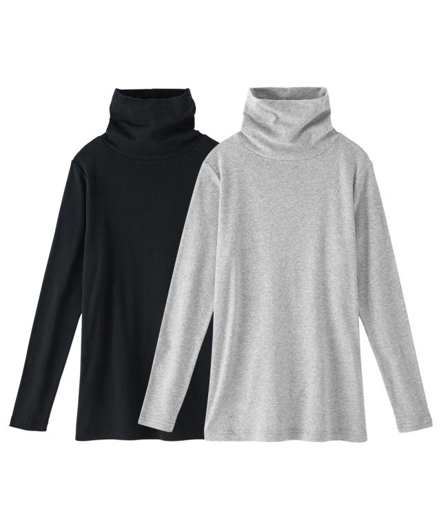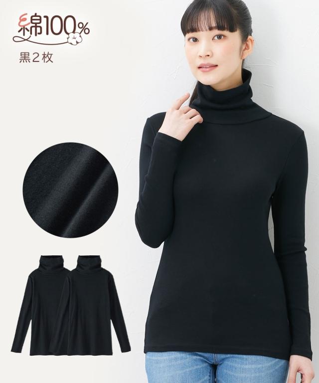 インナー 大きいサイズ レディース 綿100% タートルネック 長袖 2枚組 肌着 女性 8L/10L