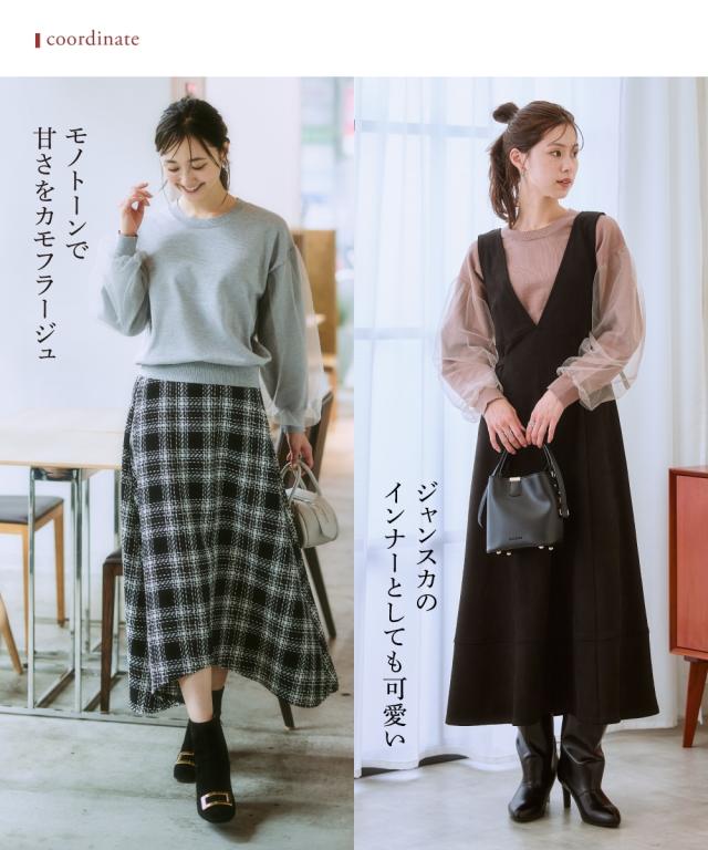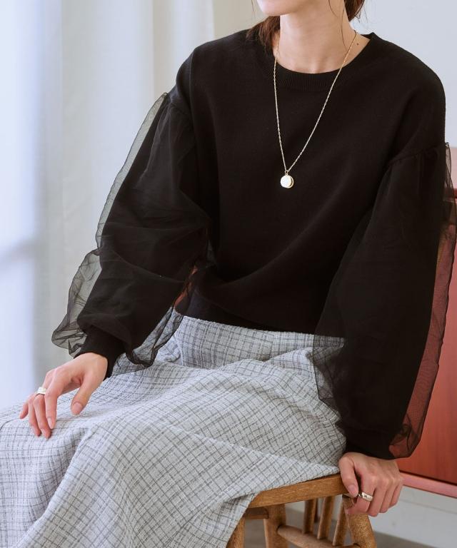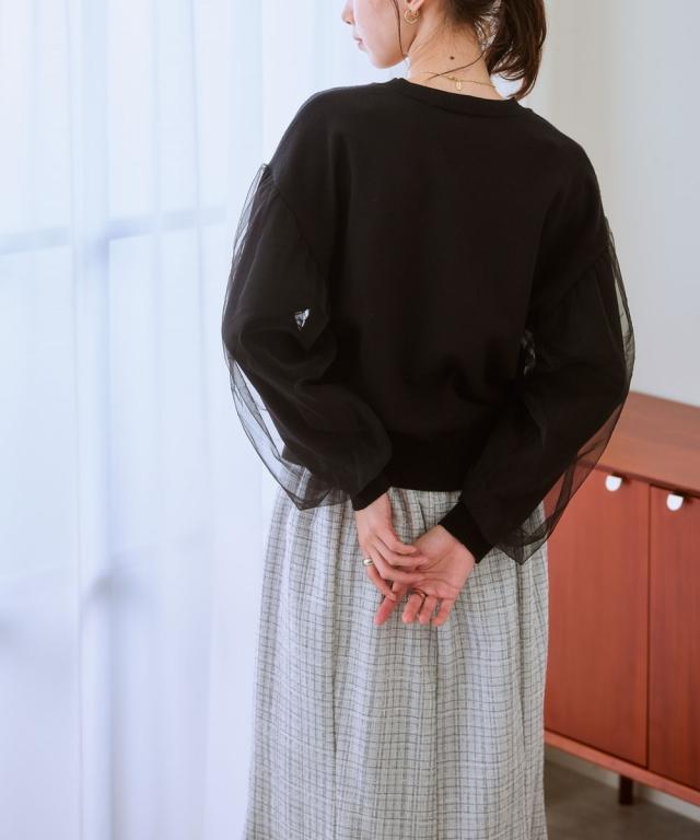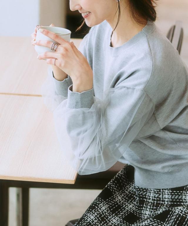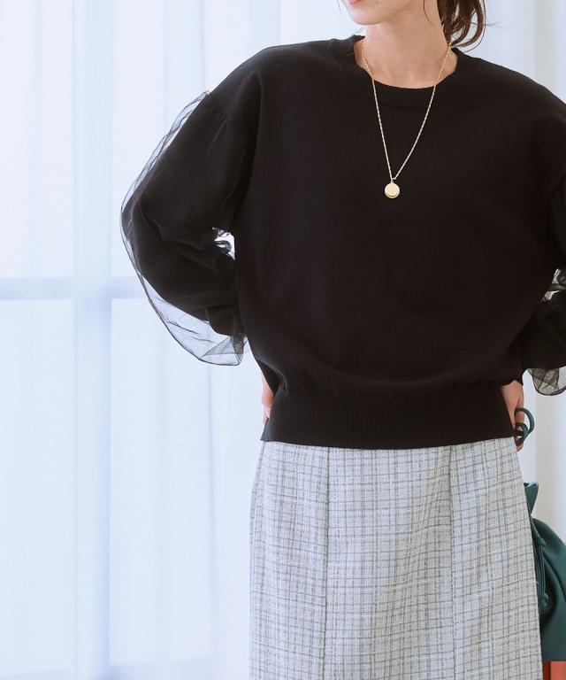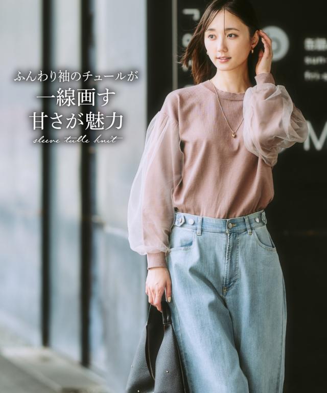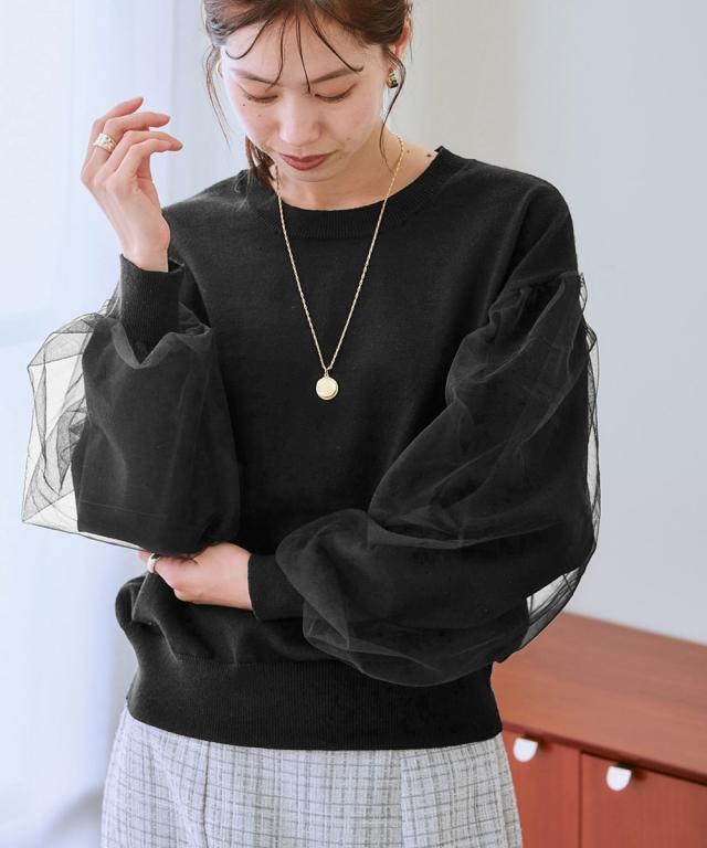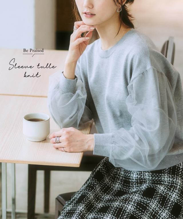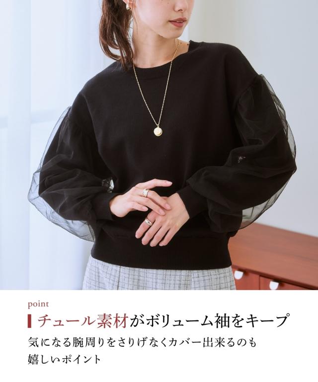 【Be praised】ーーー明日ちょっと褒められる服ーーー 袖チュールニットでつくる、こなれ感漂う着こなし 普段使いできる可愛らしいアイテムがほしいあなたへ。 袖に施された繊細なチュールが、甘さを抑え、大人っぽく着こなせるニットトップスをご紹介します。 ■デザイン シンプルな無地のニットに、チュール素材の袖を組み合わせることで、華やかさとこなれ感を演出。 カジュアルになりがちなニットトップスに、上品なチュールをプラスすることで、オフィスシーンにも対応できるきれいめカジュアルスタイルに。 程よいゆとりを持たせたシルエットで、体型カバー効果も期待できます。 袖口はリブ仕様になっているので、カジュアルながらも上品な印象に。 チュール素材は透け感があり、女性らしい華やかさをプラス。 シンプルなデザインなので、ボトムスを選ばず、様々なコーディネートに合わせやすいのも魅力です。 ■素材 柔らかく肌触りの良いポリエステル、レーヨン、ナイロン混紡素材を使用。 伸縮性があり、着心地抜群。 透け感のあるチュール素材は、軽やかで動きやすいのも特徴です。 上品な光沢感があり、高級感も漂います。 ■おすすめのスタイリング オフィススタイルには、