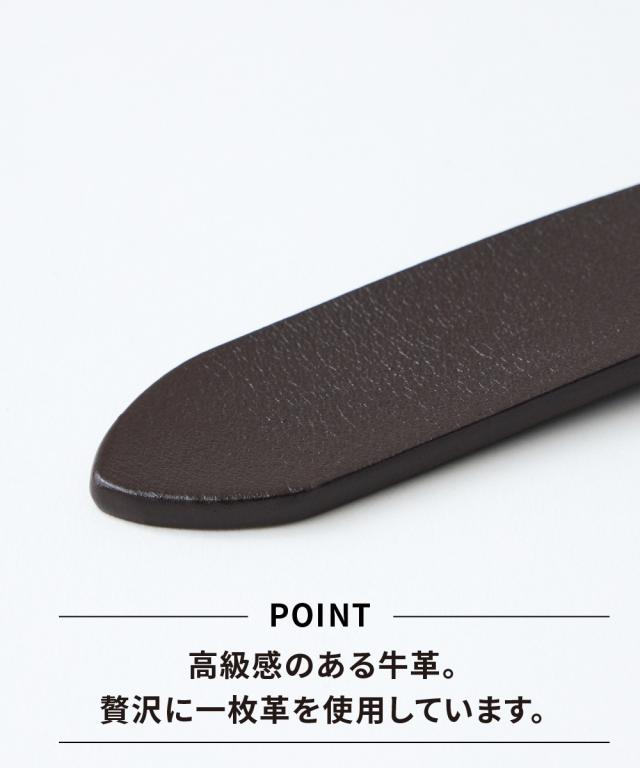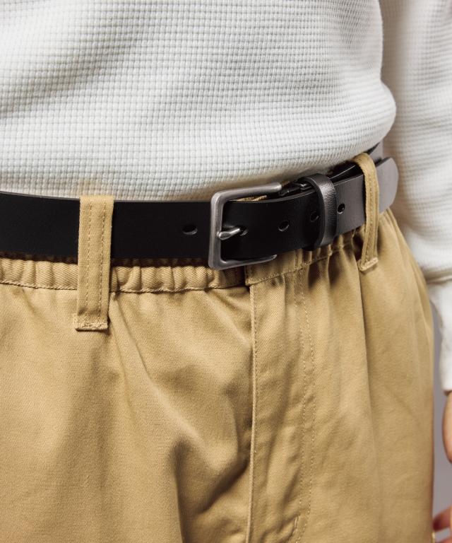 一枚革を贅沢に使った高級感のあるイタリアンレザーベルト。さまざまなコーディネートに溶け込みやすいコンパクトなバックルも特徴です。オフのスタイルはもちろん、スーツやビジカジといったオンのスタイルにもぴったりです。金具を外してベルトをカットすれば長さ調整も可能。 ■デザイン 無駄のないシンプルなデザイン。バックルはベーシックなタイプを使用しております。 ■素材 イタリア産の牛革(床革)を仕様しております。 ■おすすめのおしゃれスタイリング Tシャツやシャツを軽くタックインしたときにちらっと見えるようにしたり、トラッドなスタイルにもはまります。 ■おすすめの着用シーン 普段着 / 私服 / オフ / お出かけ / ショッピング / 旅行 / ビジカジ / トラッド / オン / オンオフ兼用 ■おすすめの着用年齢層 10代 / 20代 / 30代 / 40代 / 50代