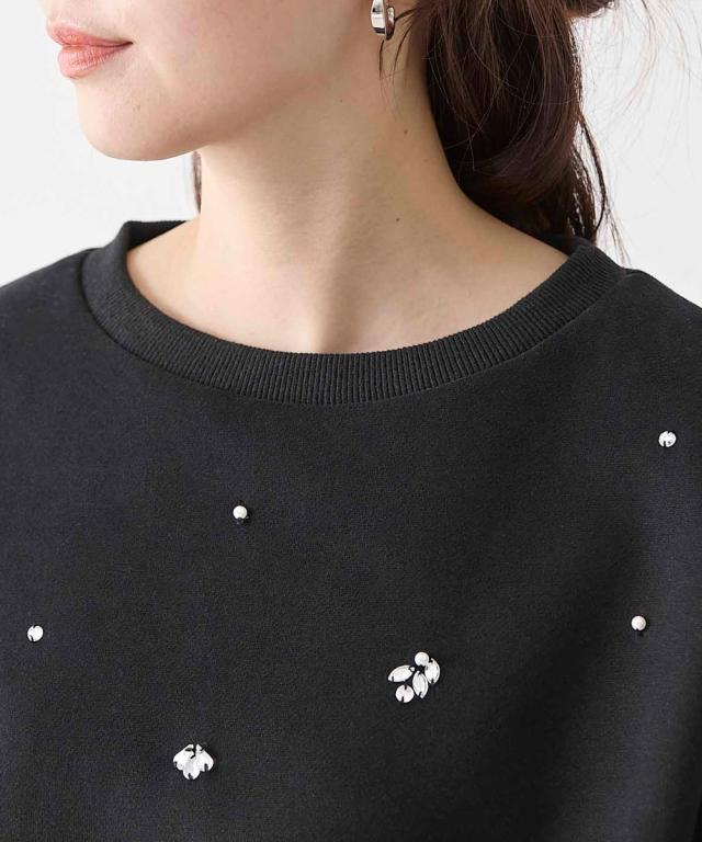 【Hana服】時を重ねて輝く女性のための大人ファッション 1枚で主役級。フロントビジューが華やかなカットソー ■デザイン ・フロントのサイド切替で、細見効果 ・ほどよいゆとりのあるシルエットで今っぽい着こなしにも。 ・身体のラインを拾わないので体型カバーも叶います。 ■素材 もっちりとした肌触りのカットソー素材ですが、裏起毛なので暖かさも ■おすすめのスタイリング 1枚で主役になるトップスなので、シンプルなボトムス合わせがおすすめです。ゆったりシルエットですが、丈も長すぎないのでゆったりとしたボトムス合わせも