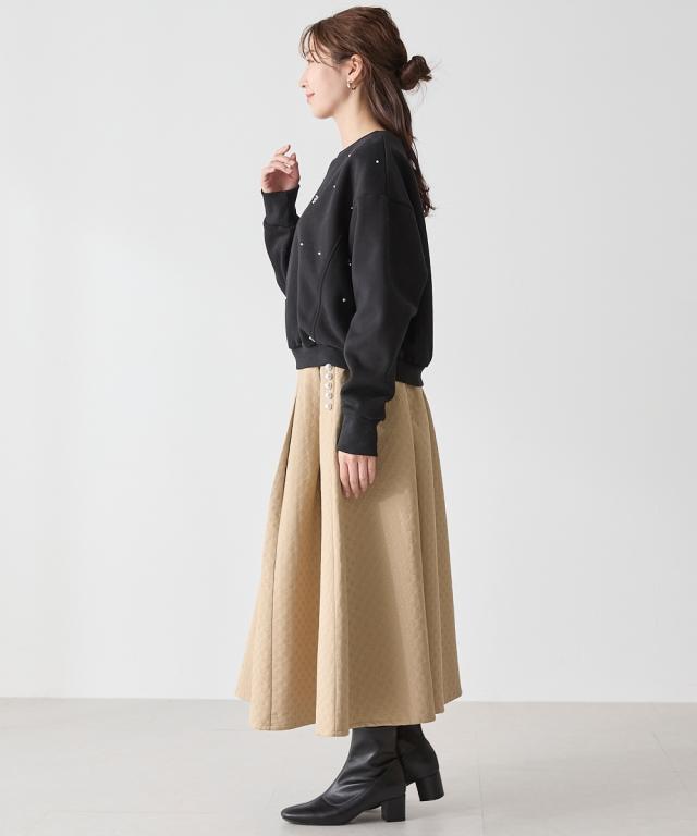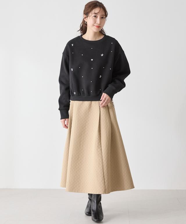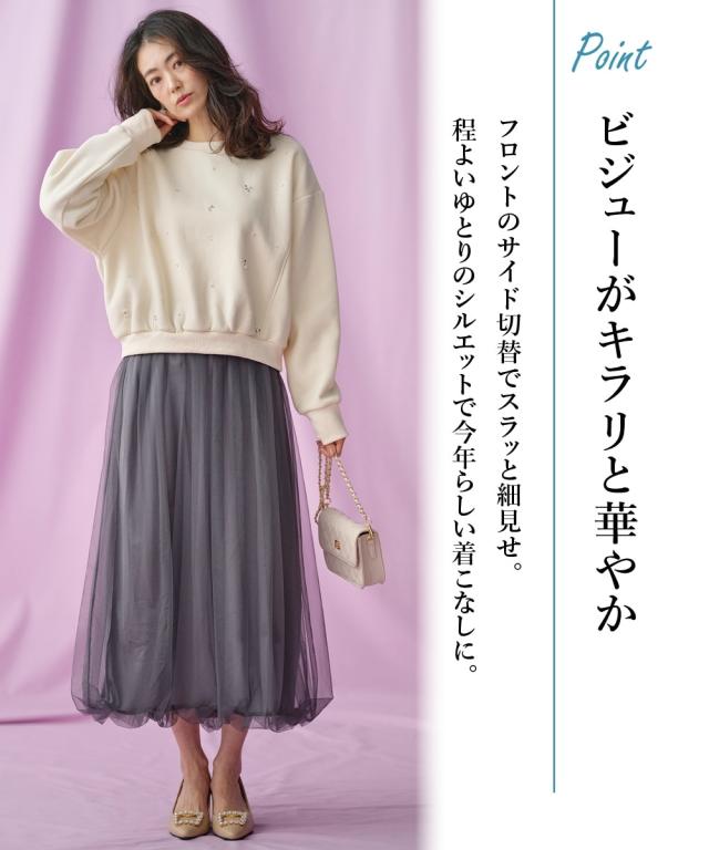 【Hana服】時を重ねて輝く女性のための大人ファッション 1枚で主役級。フロントビジューが華やかなカットソー ■デザイン ・フロントのサイド切替で、細見効果 ・ほどよいゆとりのあるシルエットで今っぽい着こなしにも。 ・身体のラインを拾わないので体型カバーも叶います。 ■素材 もっちりとした肌触りのカットソー素材ですが、裏起毛なので暖かさも ■おすすめのスタイリング 1枚で主役になるトップスなので、シンプルなボトムス合わせがおすすめです。ゆったりシルエットですが、丈も長すぎないのでゆったりとしたボトムス合わせも