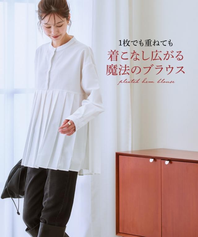 シャツ ブラウス 大きいサイズ レディース イージーケア裾 プリーツ 切替 S〜4L ニッセン nissen