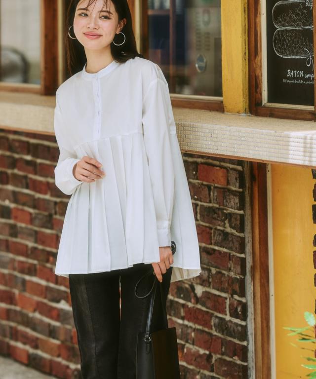 きれいめカジュアルコーデにぴったり。こなれ感漂うプリーツブラウス