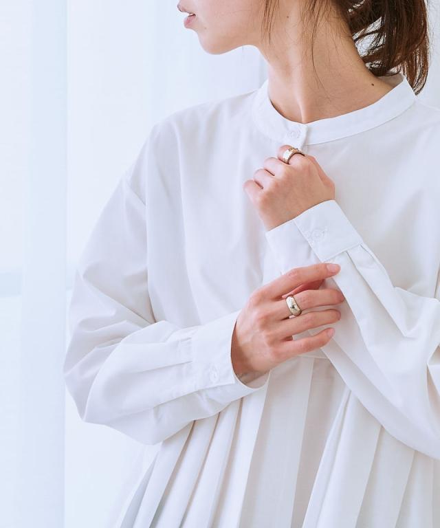 さらに、首元はすっきりとしたバンドカラーで、顔周りをシャープに見せてくれます。