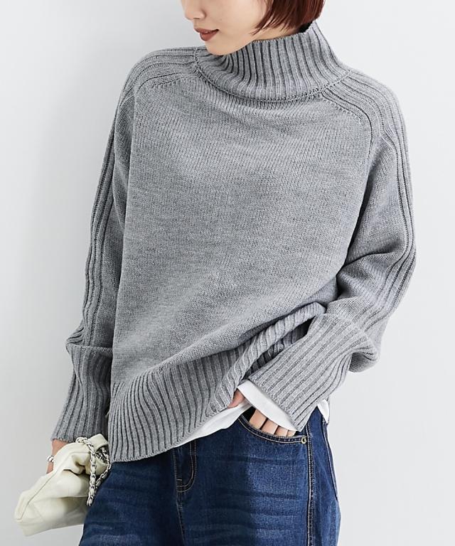 ニット セーター レディース サイドリブ切替 ハイネック トップス 冬 S/M/L