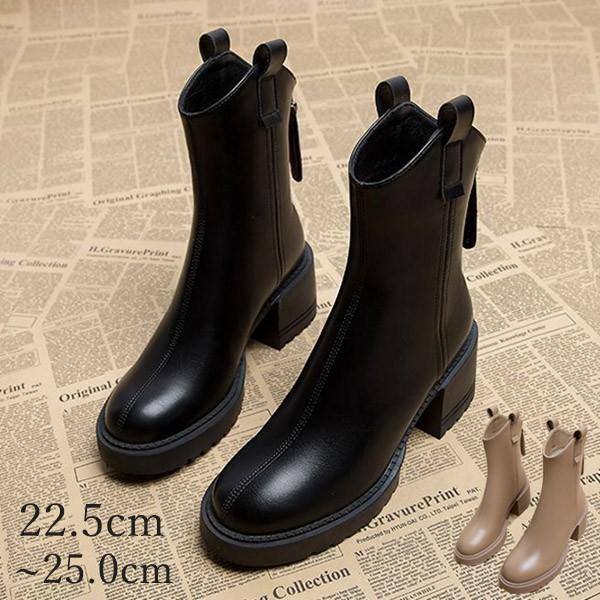 ブーツ レディース ショート丈 PUブーツ 通勤 秋冬 痛くない 歩きやすい 疲れない 大きいサイズ 美脚 防寒 スムース 細見せ シューズ 靴 くつ ブラック22.5/23.0/23.5/24.0/24.5/25.0