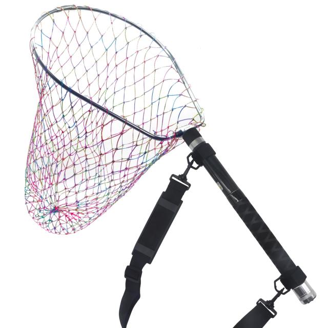 ・玉網仕様枠素材:アルミニウムアルマイト仕上げ 枠形状:折りたたみ式オーバル形状径8mm / 壁厚1.5mm 枠サイズ:約40×35cm ネットの深さ:約55cm 二重糸編み形状が崩れにくい強力馬線ラケット線素材を採用、網目を大きくすることで軽量化に成功さらに水の抵抗を軽減し、スムーズなランディングを可能