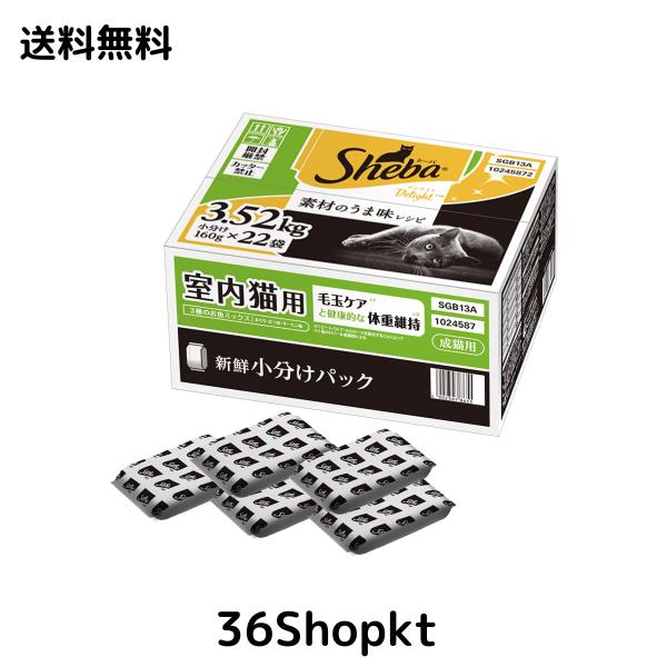 【Amazon.co.jp限定】 シーバ (Sheba) ディライト キャットフード 成猫用 素材のうま味レシピ 室内猫用 3.52kg(160g×22袋)【大容量】【