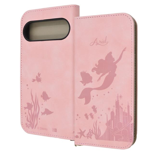 表情のあるむら染めPUレザーとトープ色のPUレザーを組み合わせた、『リトル・マーメイド』のデザインが施された手帳型Google Pixel 9 / Google Pixel 9 Pro 用ケース。