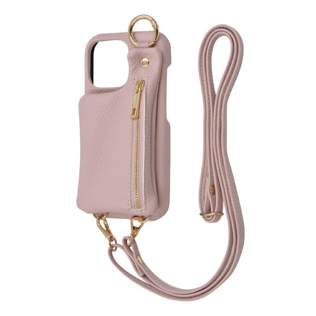 iPhone16Pro ケース ハイブリッド m1n1 ミニ ショルダー ネック ストラップ ポーチ付き オープンレザー ペールピンク カバー アイフォン16プロ iPhone 16 Pro アイホン アイフォン スマホケース