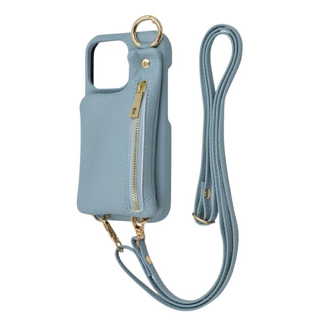 iPhone16Pro ケース ハイブリッド m1n1 ミニ ショルダー ネック ストラップ ポーチ付き オープンレザー ライトブルー カバー アイフォン16プロ iPhone 16 Pro アイホン アイフォン スマホケース