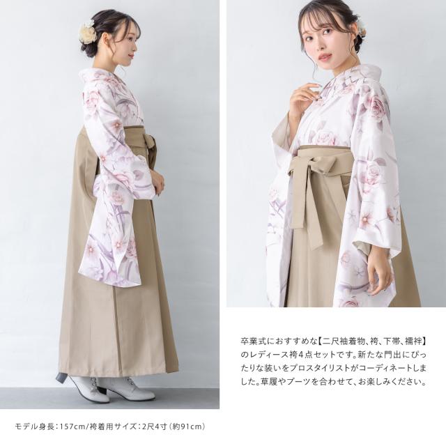 袴セット 卒業式 大学生 小学生 レディース 女の子 セット 白 紫 ベージュ ピンク バラ モダン 花柄 和装 着物セット 販売 購入 送料無料