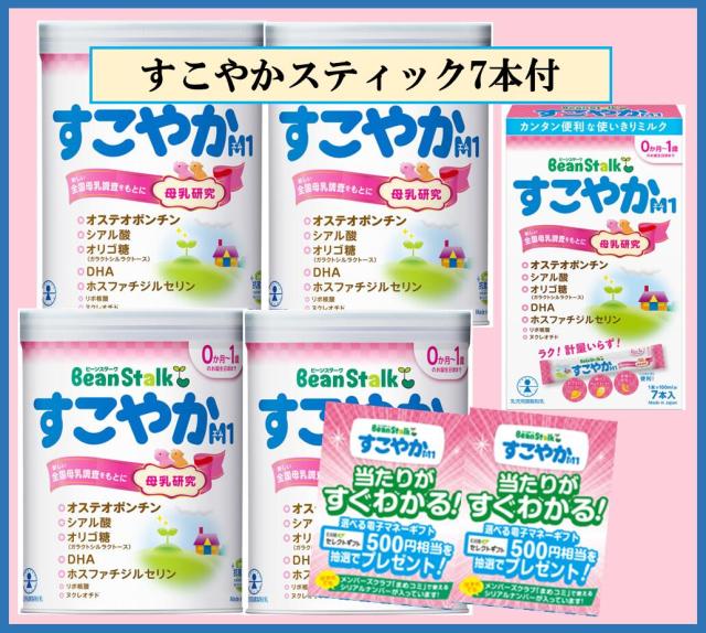 送料無料【4缶にスティック7本付】ビーンスタークすこやかM1 大缶 800g×4缶【雪印ビーンスターク/ベビー/赤ちゃん/粉ミルク】