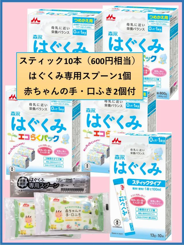 【送料無料】森永 はぐくみ エコらくパック つめかえ用【400g×2袋入×4箱+スティック10本+スプーン1個付】