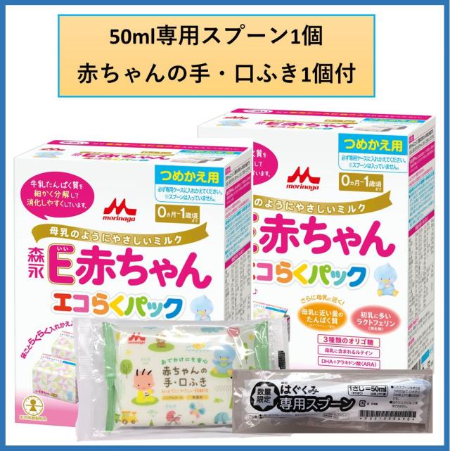 【送料無料】森永 E赤ちゃん エコらくパック つめかえ用【400g×2袋入×2箱+スプーン1個付】【森永乳業/はぐくみ/チルミル/粉ミルク】